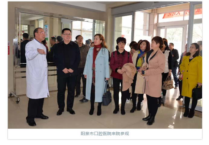 3月14日至15日,阳泉市口腔医院院长荆雅斐、副院长张艾芳带领该院中层干部一行25人来我院参观学习,院长肖希娟、副院长陈康照及相关科室人员与参观团进行了座谈交流。...
