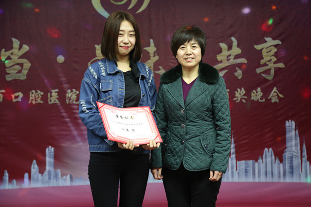 晚会第三个环节,对先进集体、优秀个人、先进工作者进行了颁奖,技工室、儿童口腔科被评为优秀科室,颌面外科、特诊科、儿童口腔科被评为患者最满意科室,儿童口腔科、种植中心、颌面外科被评为卫生先进科室。同时,于艳萍、淮晓燕被评为优秀科主任,牛方平被评为扶贫尖兵,王碧丽等9名医务人员被评为最受患者欢迎的好医生,李智民等29名医务工作者被评为先进工作者。