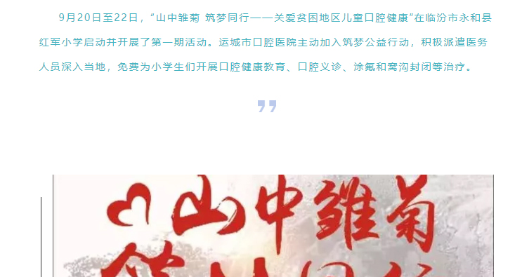 关爱贫困地区儿童口腔健康 | 运城市口腔医院用爱浇灌“山中雏菊” |