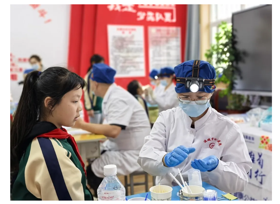 运城市口腔医院儿童口腔科医生携手多家医疗机构的同行,共同为当地孩子进行了细致的口腔检查,并对符合条件的学生实施了局部涂氟和窝沟封闭等专业预防措施,有效降低龋齿发生风险。